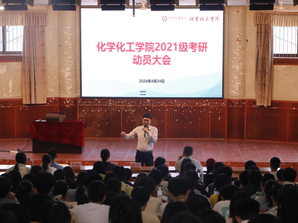 为延续学院近年来学生积极考研的传统,提升2021级本科生考研的积极性,帮助他们进一步了解考研形势、专业前沿发展动态,进而做好考研院校专业选择与考研复习规划,5357cc拉斯维加斯官方网址于2024年4月24日在南坝校区学术报告厅举行2021级考研动员大会,大会由学院党委副书记潘维主持,学院院长赖川教授,副院长向文军、王芬教授,专任教师曾鸿耀博士,学院各专职辅导员,以及2020级考研学生代表和2021级全体学生参加此次大会。