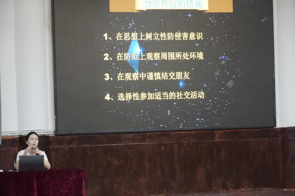 随后,李越老师从知校、爱校、荣校三方面详细介绍了学校和学院,鼓励同学们积极参与校园文化建设,树立学生主人翁意识。积极参加集体活动,感受集体的力量和荣誉,加深对校园生活的热爱。除此之外,希望同学们能够积极参与各类竞赛活动,提升综合实力,并向同学们展示了我院考研数据各项记录的历史新高,让同学们能够做好生涯规划,夯实专业基础,向自己目标奋进。秦雪松老师从人身安全、财产安全、交通安全、消防安全等四个方面对同学们的安全进行了着重强调,以图画、对话等形象的方式敲响警钟,让同学们知悉其中的隐患。