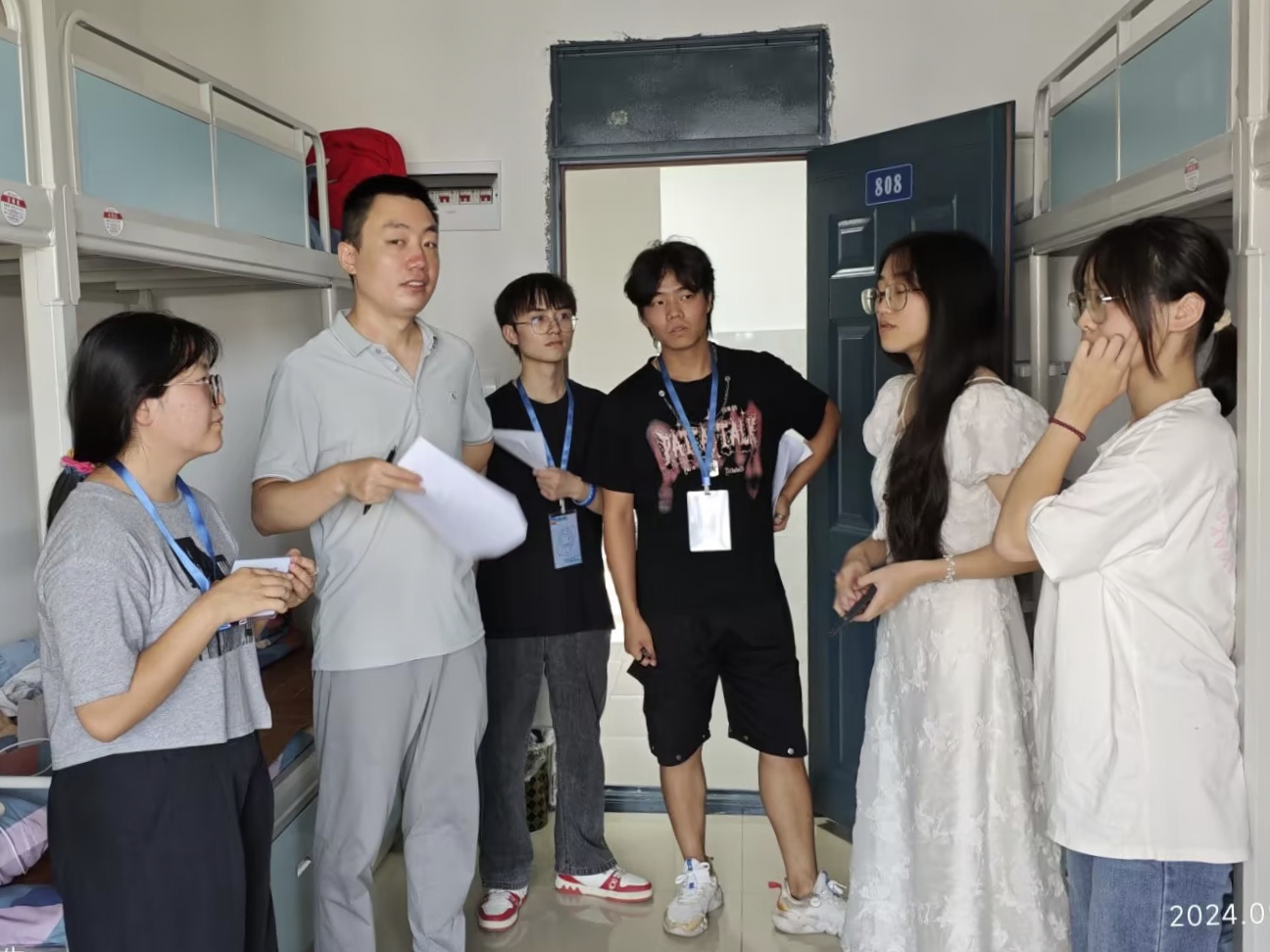 为深入了解2024级新生入住情况,帮助新生尽快适应大学生活,2024年9月7日下午,5357cc拉斯维加斯官方网址副院长王芬,党总支副书记潘维,学工办主任崔宝玉分组带领专职辅导员、学生会主席团等人走访慰问新生寝室,向新同学们予以关怀和问候。